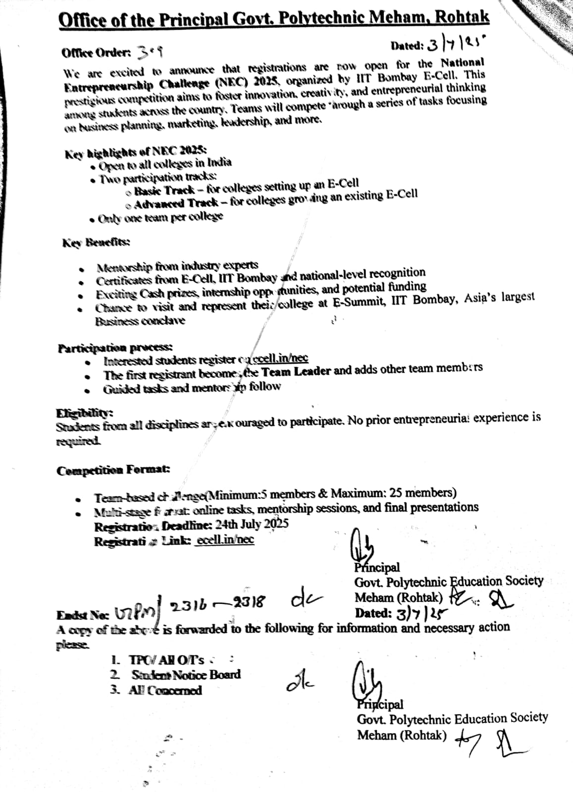 Urgent Message: Walk in Interview schedule to be held on 28.01.2026 has been postponed till further orders due to adminstrative resons. O/I Civil and O/I DMLT kindly inform the stakeholders. All other faculty members also to inform your near and dear, who so ever is coming for interview tomorrow.