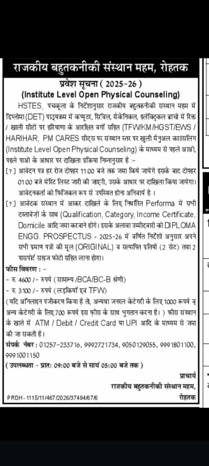 For any Query regarding Admission Contact: 9050129055, 9992721734, 9813464803
