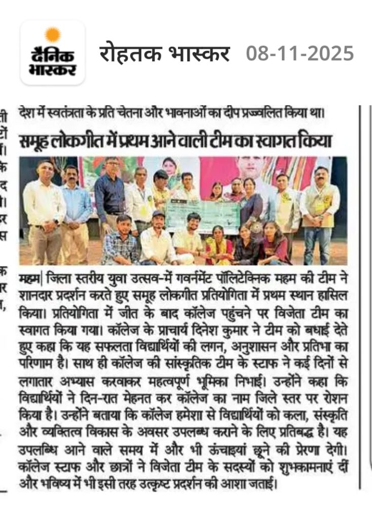 1st Position in District Youth Festival 2025 : Folk Song Group